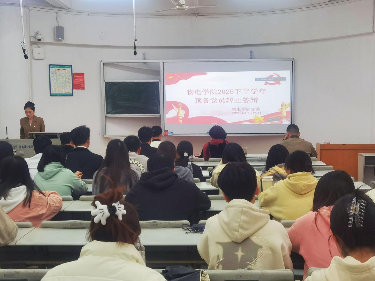 10月25日上午,304永利集团官网入口党委在6T1教室开展2025年下半年预备党员转正答辩。党委书记周畅、副书记石红芳、学生第二党支部书记姚世鹏担任评委,全体学生党员、入党积极分子参加。