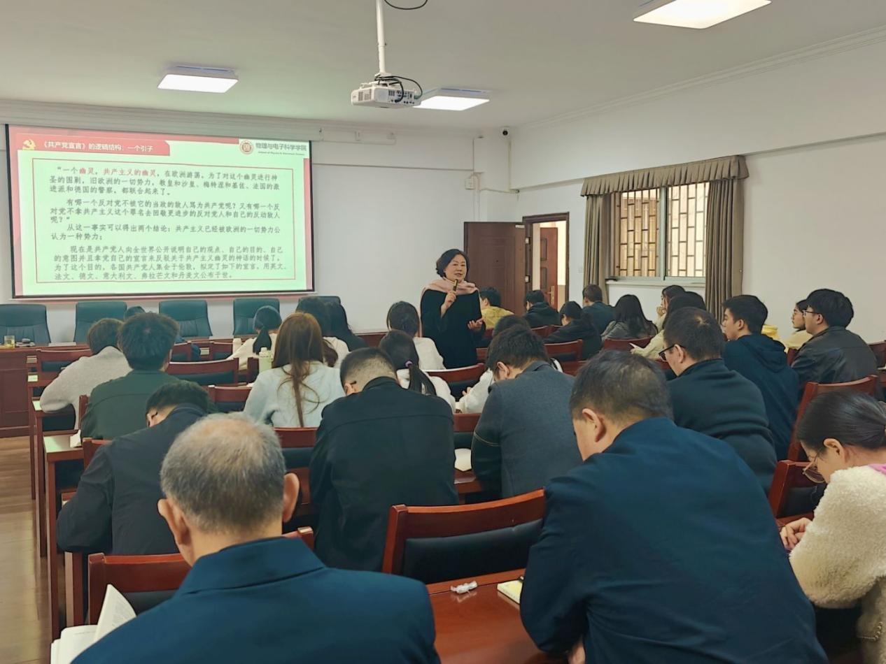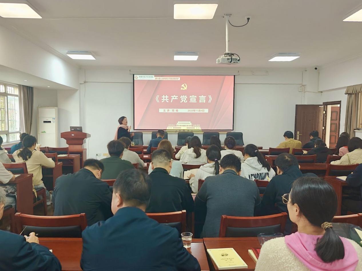 11月4日下午,304永利集团官网入口党委书记周畅在6211会议室给全员教师党员和53期入党积极分子讲授《共产党宣言》专题党课。