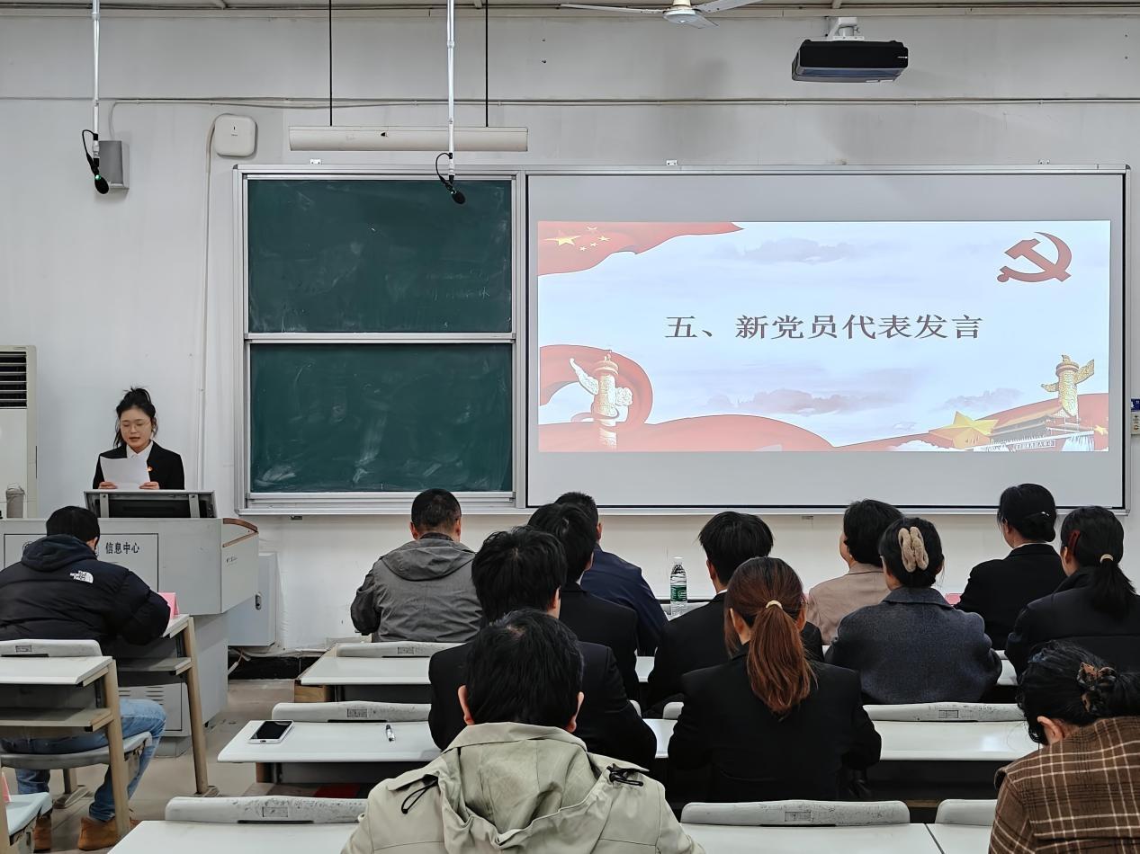 新党员代表刘蕊承诺将以实际行动发挥党员模范作用,争做勤学善思、实干担当、团结同学的表率。她表示将恪守党员标准,把青春奋斗融入党和人民事业,在民族复兴征程中书写青春华章。