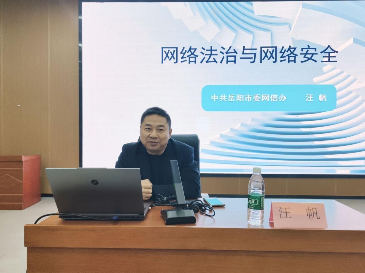 12月4日,304永利集团官网入口在17118学术报告厅举办网络法治与网络安全讲座,岳阳市网信办汪帆科长受邀主讲,学院党委书记周畅、副书记石红芳、2024级辅导员李哲君出席,2025级辅导员刘莹主持,2025级本科生和研究生参与。