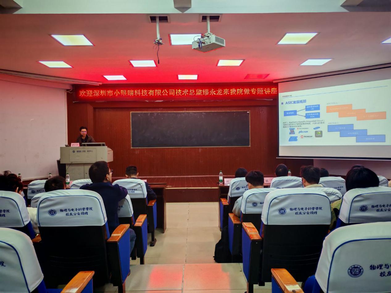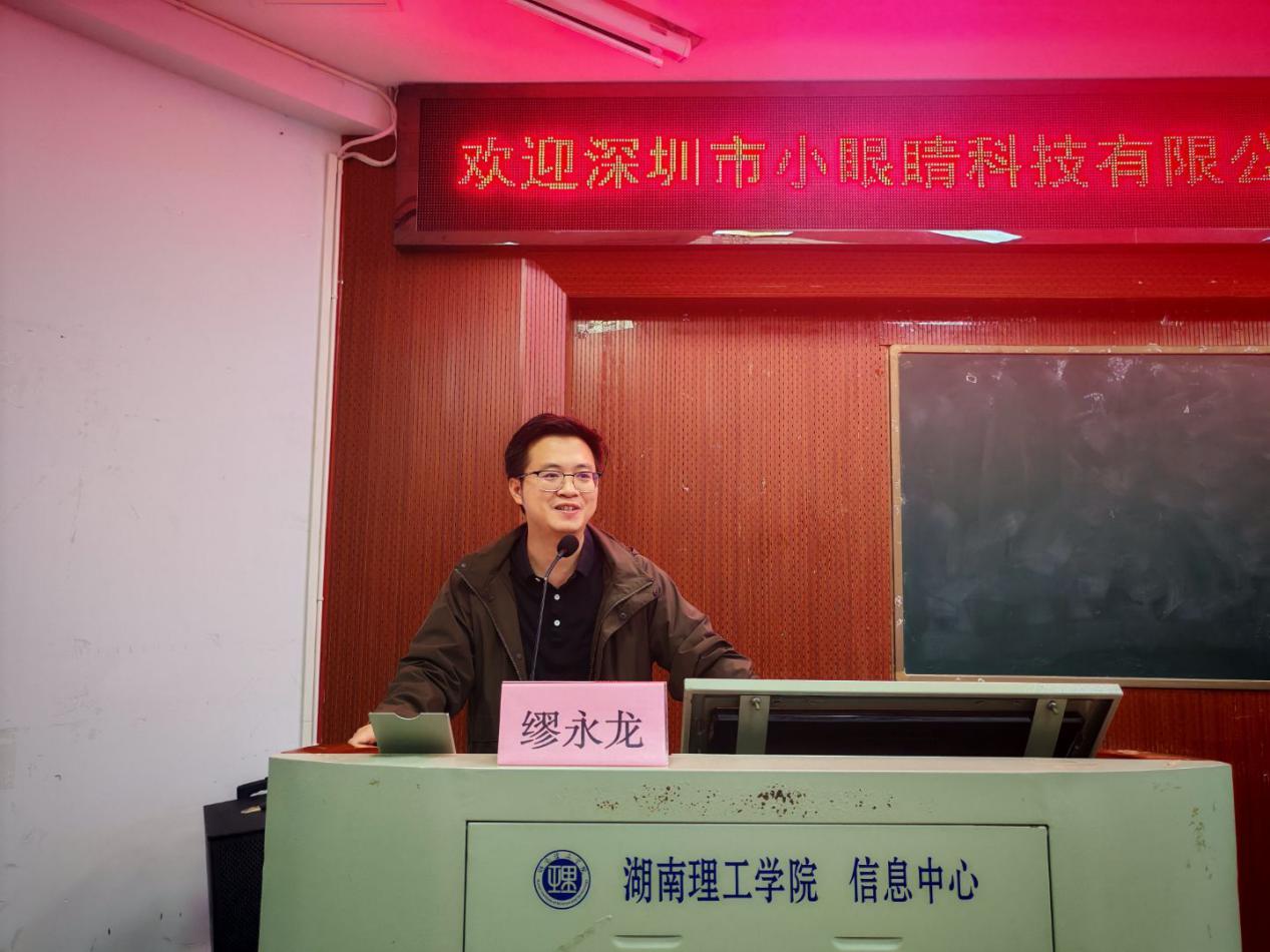 10月18日,深圳市小眼睛科技有限公司技术总监缪永龙来永利官网开展专题讲座,304永利集团官网入口院长魏勇主持,党委副书记石红芳及电子、微电各专业任课教师参会。
