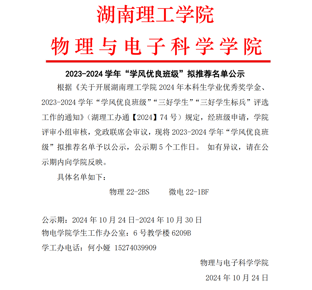 304永利集团官网入口304永利集团官网入口 2023-2024 学年“学风优良班级”拟推荐名单公示